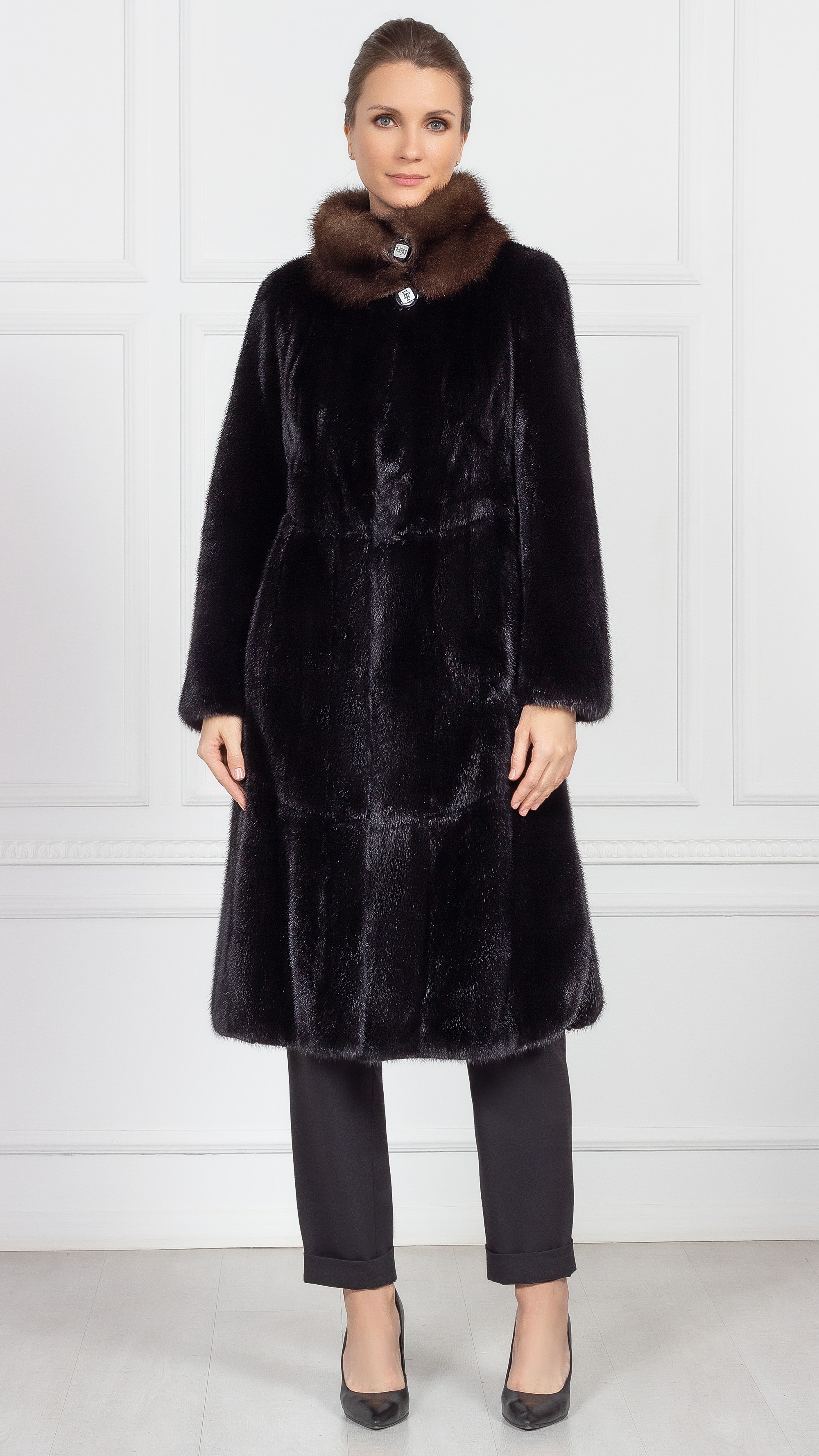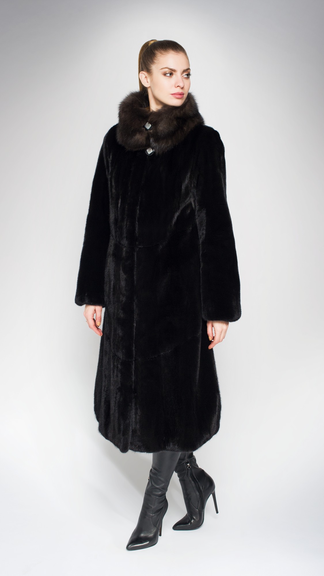 Шуба из меха норки, отделка соболь